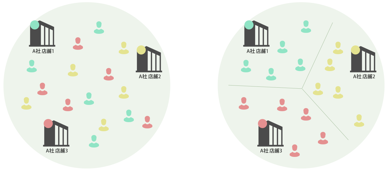 御社の近くの、顧客交換を希望している他社(あるいは他店舗)の顧客が地図上で確認可能です。ルート配送の効率化や、事業拡大の際のツールとしてご利用いただけます。