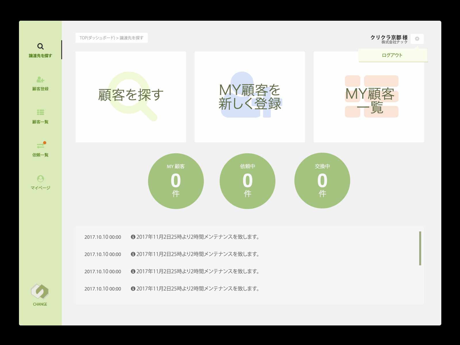 交換したい、もしくは獲得したい顧客を選んで依頼ボタンを押すだけです。その後の交渉は私達CHANGEにおまかせください。